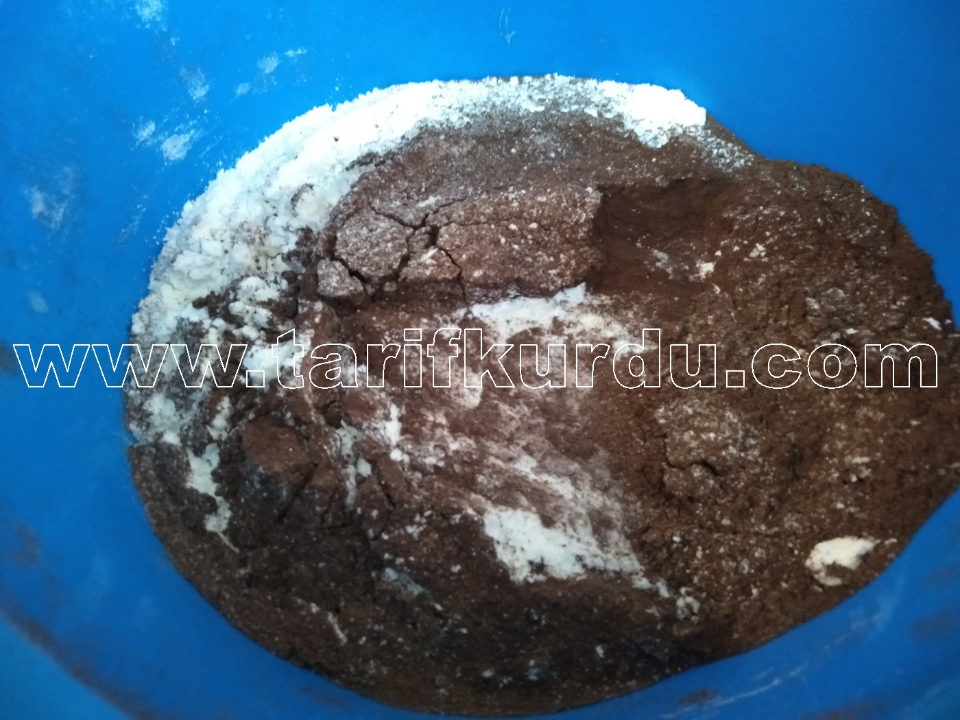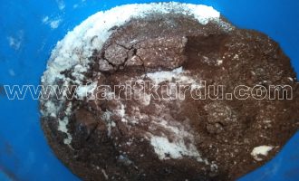 En son geriye kalan diğer malzemeleri yani kakao, kabartma tozu ve unu eleyerek karışıma ilave edelim. İyice çırptığımız kek karışımını yağladığımız borcama dökelim ve 180 derecede önceden ısıtılmış fırında pişmeye bırakalım.
