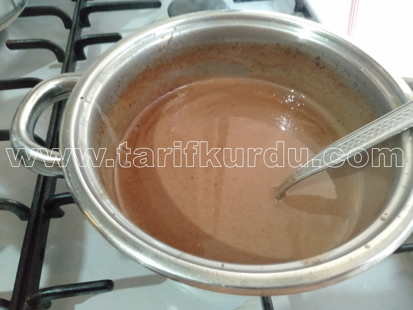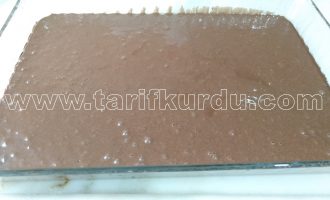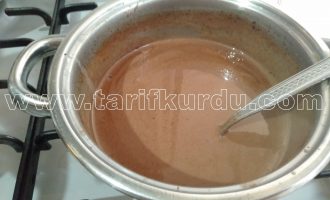 Bu arada kek piştiyse fırından alalım ve üzerine kürdanla delikler açıp,2 su bardağı sütü kek ılıyınca üzerinde gezdirelim ve kek iyice soğuyana kadar sosumuzu hazırlayalım.