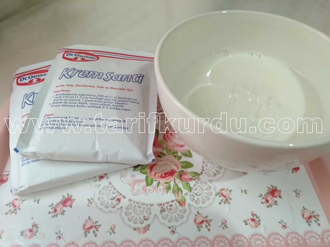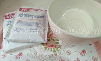 Bu arada kremasını hazırlayalım. Krema içinde krem şanti ve sütümüzü çırpalım.