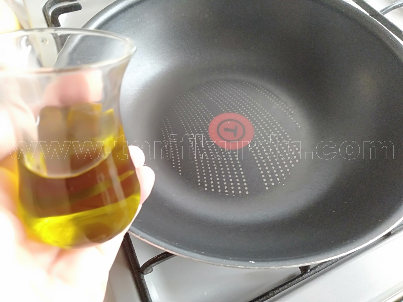Öncelikle tavaya zeytinyağını alalım. Ardından piyaz şeklinde doğradığımız soğanı atıp kavuralım.