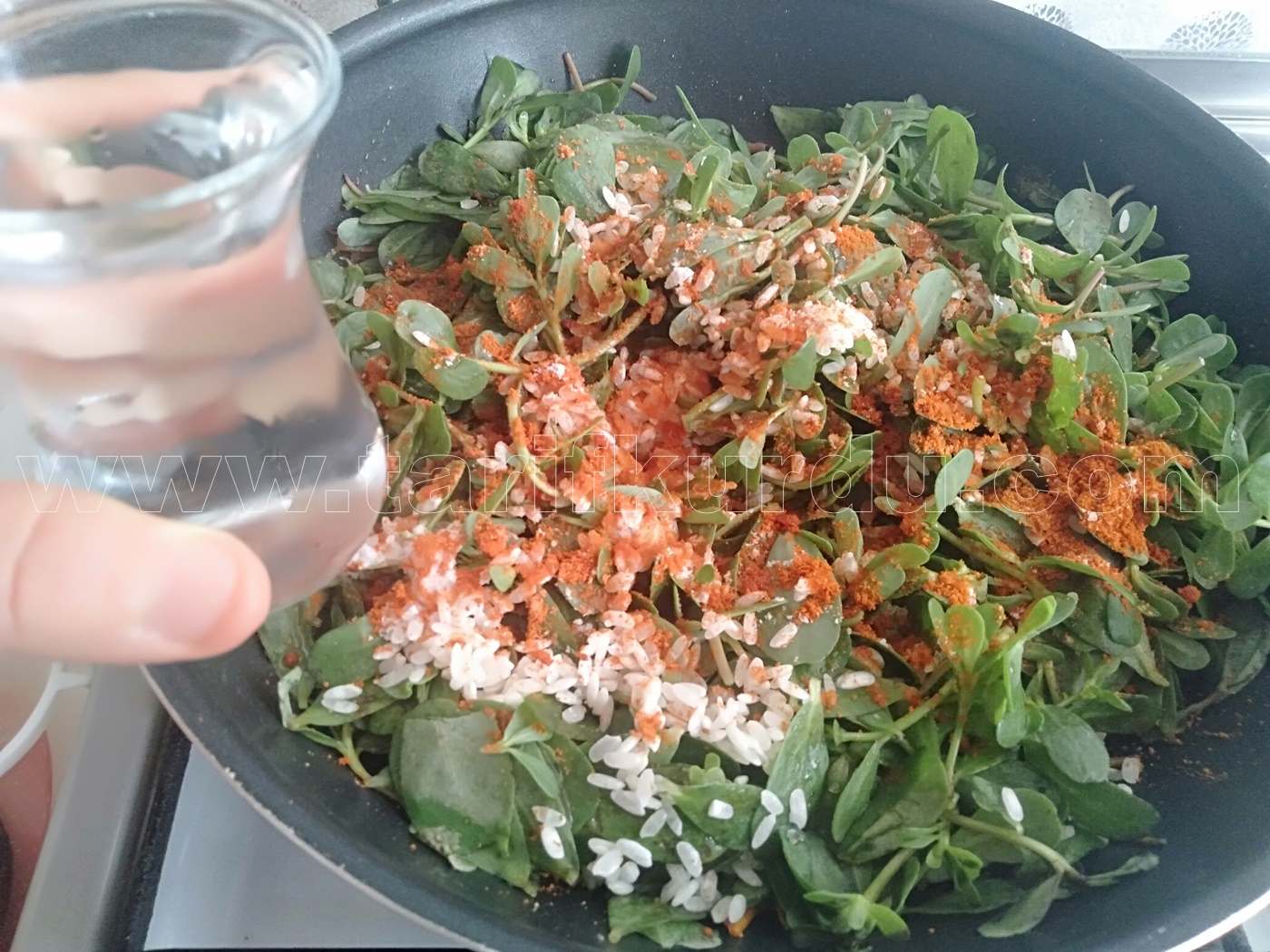 Daha sonra semizotunu, pirinci ve baharatını ekleyelim. Tekrardan kapağını kapatıp pişmeye bırakalım.