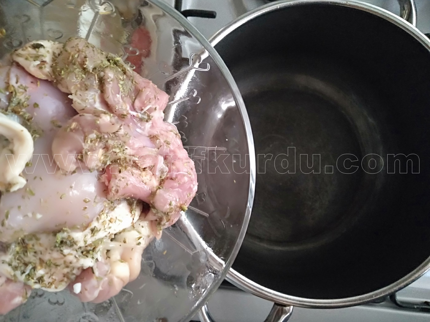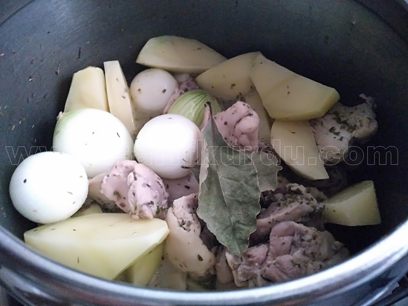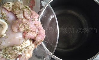 • Sonra tavuğu düdüklü tencereye kapağı açık şekilde bırakalım.