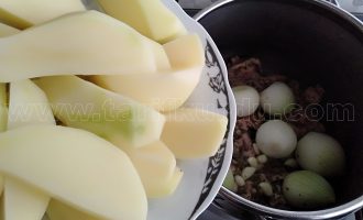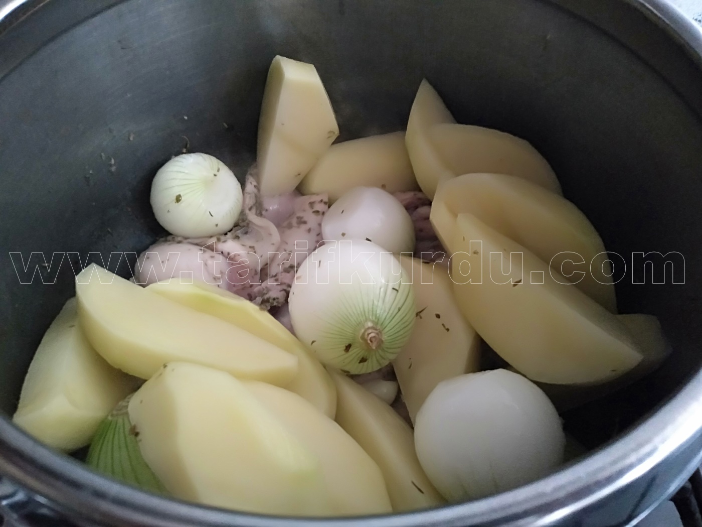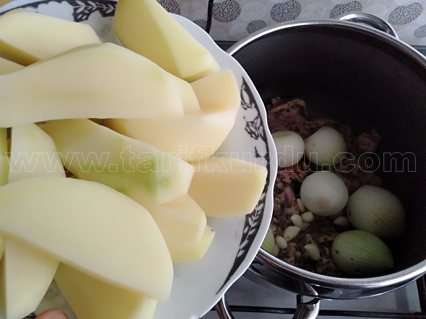 • Dilimleyip temizlediğimiz patatesleri de koyalım.